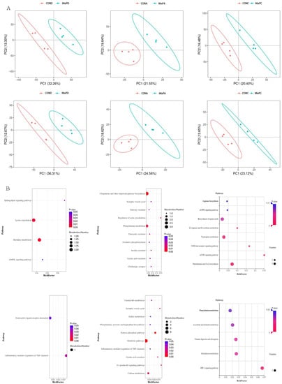 3.2. Effect of Feeding Probiotics on Intestinal Metabolites