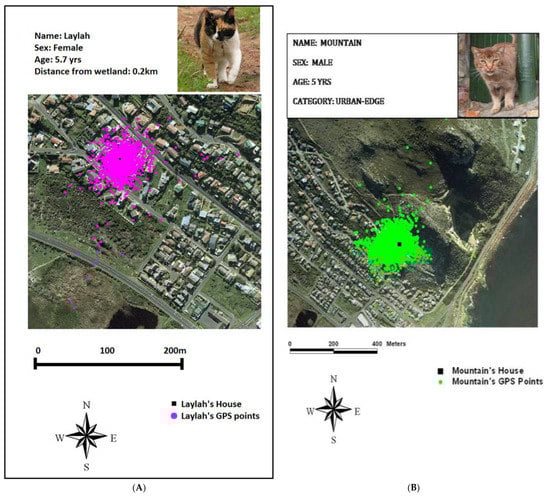 - Bischof, R.; Hansen, N.R.; Nyheim, Ø.S.; Kisen, A.; Prestmoen, L.; Haugaasen, T. Mapping the “catscape” formed by a population of pet cats with outdoor access. Sci. Rep. 2022, 12, 5964. [Google Scholar] [CrossRef]