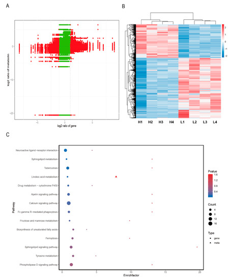 APA StyleYu, H., Raza, S. H. A., Pan, Y., Cheng, G., Mei, C., & Zan, L. (2023). Integrative Analysis of Blood Transcriptomics and Metabolomics Reveals Molecular Regulation of Backfat Thickness in Qinchuan Cattle. Animals, 13(6), 1060. https://doi.org/10.3390/ani13061060