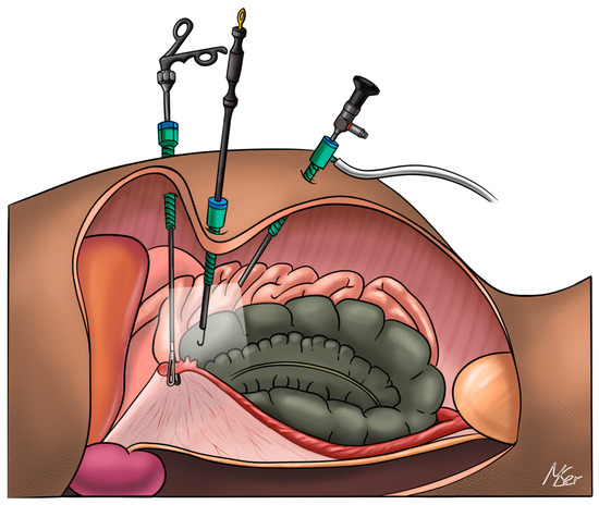 In all subjects, upon completion of the procedures, the abdominal cavity was rapidly inspected to highlight any surgery-related trauma. The paramedian trocars were removed under laparoscopic vision. The laparoscope and its trocar were removed, and external pressure was applied to each side of the abdominal wall to facilitate the leakage of the insufflated CO2 through the incisions.