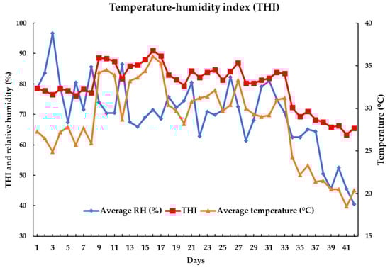 - Zimbelman, R.; Rhoads, R.; Rhoads, M.; Duff, G.; Baumgard, L.; Collier, R. A re-evaluation of the impact of temperature humidity index (THI) and black globe humidity index (BGHI) on milk production in high producing dairy cows. In Proceedings of the Southwest Nutrition Conference, Tempe, AZ, USA, 26–27 February 2009; pp. 158–169. Available online: http://cals.arizona.edu/ans/swnmc/Proceedings/2009/14Collier_09.pdf (accessed on 2 February 2023).