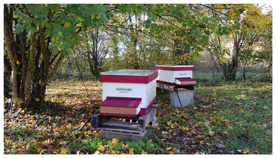 - Bruneau, E.; Barbancon, J.; Bonnafe, P.; Domerego, R.; Fert, G.; Le Conte, Y.; Ratia, G.; Reeb, C.; Vaissiere, B.; Clément, H. Le traité Rustica de l’apiculture, rustica ed.; Rustica: Paris, France, 2011. [Google Scholar]
