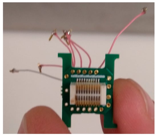 Figure 2). Approximately 0.5 cm of each wire was exposed and wrapped around a 3 A, 100 V, IC socket adaptor (0.40 mm diameter and 2.5 mm length) (Bürklin Elektronik; Oberhaching, Germany). This adaptor was used as the electrode for measuring brain wave activity. The wire and IC socket adaptor were soldered together using soldering flux (Farnell; Paisley, UK); a 25 W, 230 V soldering iron (Farnell; Paisley, UK) and 1 mm solder (Maplin Professional Services; Edinburgh, UK). The opposite end of the wire was stripped by approximately 0.3 cm; the wire was then fed through the bottom of the correct hole (see