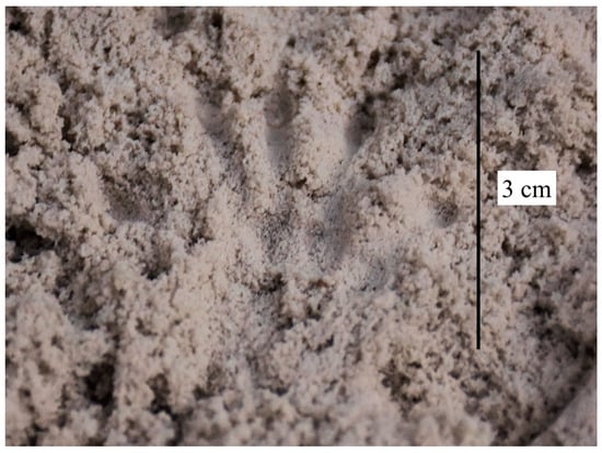 Tracking is one of the widespread methods applied to monitor space use by terrestrial mammals. If the conditions of a site or season do not provide any natural substrate that allows imprinting any tracks (snow, mud, sand), special tracking tunnels, pads, plates, or rafts are installed in the field, usually containing sooted metal sheets [], acetate sheets with a graphite, alcohol, and oil coating [], ink and paper [], or wet clay []. Such devices are frequently used to monitor the use of wildlife crossings under motorways [] and might thus also be applied to quantify animal movements across natural barriers. Despite the development of trail cameras in recent years, followed by a significant increase in the number of studies based on that technology [], tracking pads still provide a cheap and environmentally friendly alternative for some research goals when detailed information about individual behaviour is not necessary. Trail cameras, which are several orders of magnitude more expensive, may cause significant financial losses in the budget of any research project if they are stolen from the field on a larger scale. Additionally, they become burdensome e-waste when they stop functioning or get damaged. In contrast, tracking pads and tunnels do not suffer from these drawbacks, making them a more sustainable solution Due to its specific physical properties, kinetic sand seems to be a promising medium for use in tracking tunnels. However, no study has ever applied it, nor is it considered in available guidelines for the monitoring of mammals.