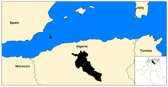 To conduct this study, the central area of the Algerian steppe was chosen, in particular, the province of Djelfa, as natural pasturelands constitute more than 70% of the overall area of the province [], where sheep production has been the principal output of these areas. The province of Djelfa ranks first in terms of sheep production in Algeria, with a herd of 3,242,760 heads, representing nearly 12% of the total national sheep herd []. The geographical location and a large number of sheep give a better representation of the extensive pastoralism in the Algerian steppe, which is still very present (Figure 1).