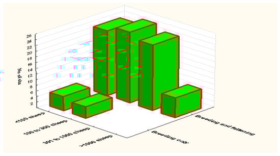 The third group, including 20 farms, differs from the other two groups by some characteristics, namely, sedentarization, which means that the livestock is raised in a semi-extensive system in the steppe pastures, combined with fodder production, and supplemented with concentrated feed. This group is also characterized by a relatively small to medium flock size, and there is a large majority of farms fattening their lambs, therefore the commercialization is in a short circuit. Farmers are often the owners, using salaried labor, and in some cases, the owners themselves do the work of guarding and fodder farming but never guard the herds of others.
