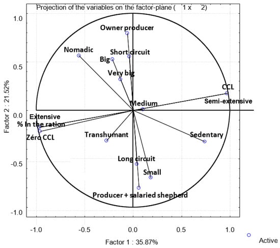 Results of the principal component analysis (PCA) of livestock farmers: variable projection.