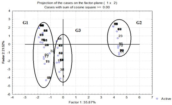 Using a typology means representing the diversity of situations in the form of categories or types. This simplifies the reality by identifying some main types based on criteria considered pertinent to the studied issue. The projection of the variables on the two axes of PCA (Figure 3) shows that all variables have good correlation, and indeed these variables constitute the real characteristics of the three groups of farms resulting from the projection of the data on the two axes of the analysis (Figure 5). The first and second groups of farms are nomads: their movements are opportunist, following the pastures and water, according to an itinerary that varies from year to year depending on the availability of these resources. They are also transhumant: they make regular movements between fixed points in order to exploit the seasonal availability of pastures. Both conduct their herds in extensive mode on natural rangelands, moving to the pre-Saharan pastures in winter, which are in better condition than the steppe pastures, and to the Tellian highlands in summer for the stubble; however, today the steppe pastures represent less than 30% of the feed ration [], supplemented by concentrates which constitute more than 70% of the feed ration per day. The third group of farms is sedentary, semi-extensive, and practices an association of forage farming and livestock, which forms the basis of their feeding systems, with a limited proportion of supplementation (<20%) in the feed ration. These aspects of feeding and mobility constitute the viability of existing management systems and are often considered as criteria of differentiation between different systems []. For these three groups, the major objective of the farmers is to ensure the feeding of their livestock with reasonable costs, which is essential for the success and continuity of their activity; in fact, feeding is often the keystone of livestock systems []. The technical criteria, including the association of livestock with agriculture, were often privileged, making it possible to differentiate between pastoral, agro-pastoral, and agricultural systems []. This precision allowed us to conclude that the three groups of farms in our study are part of two systems. The first system is pastoral and extensive, represented by the first and second groups, which have a feeding strategy based mainly on the movement of animals on the rangelands with supplementation of concentrates, while the second system is agropastoral and semi-extensive, represented by the third group with a feeding strategy based on forage production, the natural rangelands, and supplementation at a limited percentage.