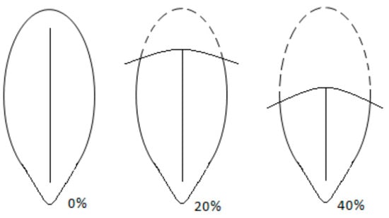 Schematic diagram illustrating 0%, 20%, and 40% dorsal fold percentage cover used during the analysis of digital images of the vulva.