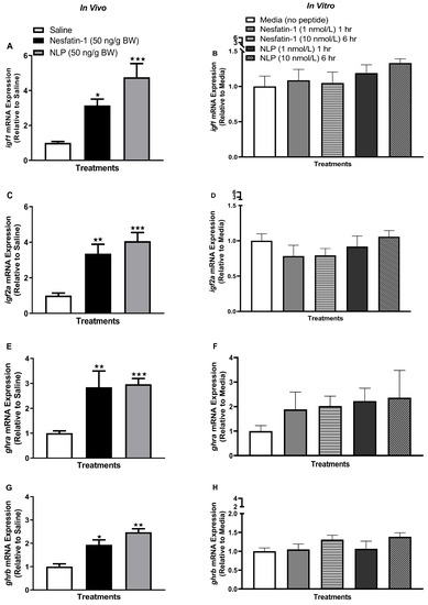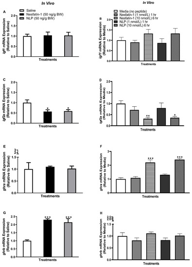 3.3. Nesfatin-1 and Nlp Modulated an ghr-igf System mRNA Abundance in Goldfish Adipose Tissue
