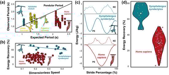 - Michilsens, F.; D’Août, K.; Aerts, P. How Pendulum-like Are Siamangs? Energy Exchange during Brachiation. Am. J. Phys. Anthropol. 2011, 145, 581–591. [Google Scholar] [CrossRef]