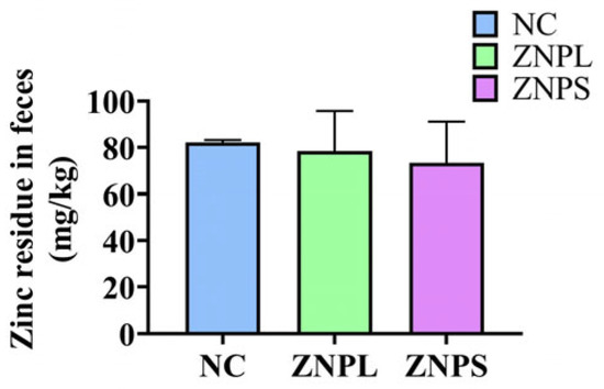 There was no significant difference in the residual Zn content in broilers’ excreta (Figure 1).