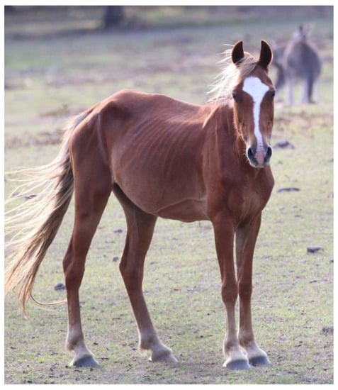 - Harvey, A.M. Wild Horse Welfare: Assessment and Associations with Population and Behavioural Ecology. Ph.D. Thesis, University of Technology Sydney, Sydney, NSW, Australia, 2022. [Google Scholar]