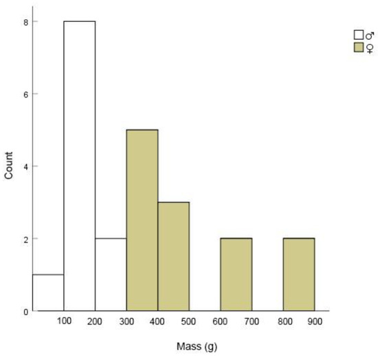 Mass–class distributions of Reeves’ turtles (Mauremys reevesii) tracked during field surveys in Qichun County, Hubei Province, China.