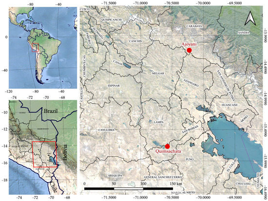Geographical localization of Quimsachata and Ajoyani alpaca populations in the department of Puno, Southern Peru.