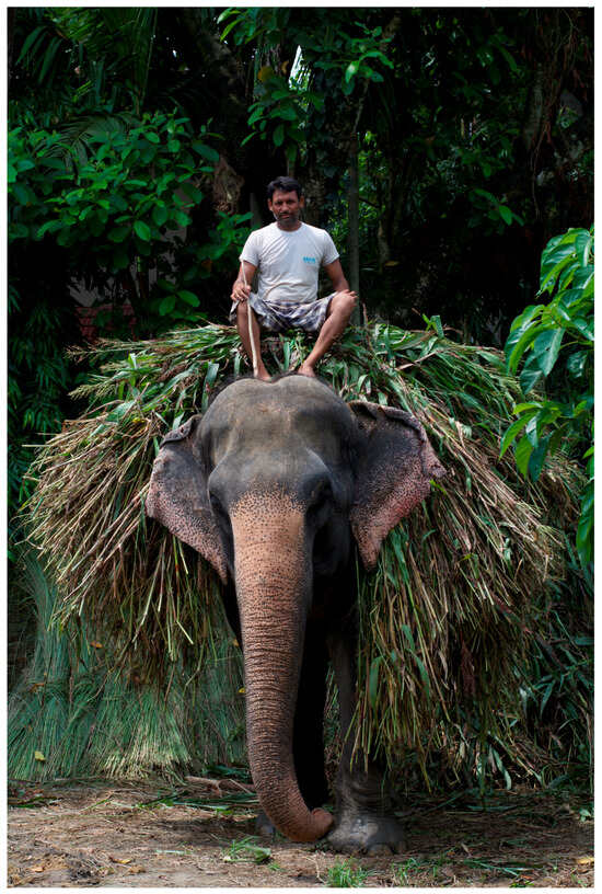 - Hart, L. The elephant-mahout relationship in India and Nepal: A tourist attraction. In Animals in Person: Cultural Perspectives on Human-Animal Intimacy; Knight, J., Ed.; BergRoutledge: Oxon, UK, 2005; pp. 163–189. [Google Scholar]