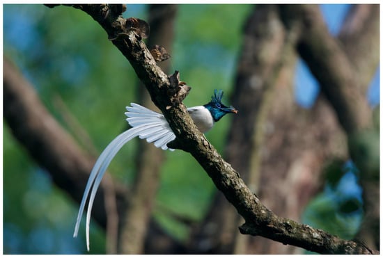 Male Himalayan Paradise Flycatcher (Terpsiphone paradisi). Chitwan National Park (henceforth CNP), Nepal. Photos by Nepal Dynamic Eco Tours, used with permission.