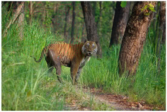 - Wikramanayake, E.; Manandhar, A.; Bajimaya, S.; Nepal, S.; Thapa, G.; Thapa, K. Chapter 10—The Terai Arc Landscape: A Tiger Conservation Success Story in a Human-dominated Landscape. In Noyes Series in Animal Behavior, Ecology, Conservation, and Management, Tigers of the World: The Science, Politics and Conservation of Panthera Tigris, 2nd ed.; Tilson, R., Nyhus, P., Eds.; William Andrew Publishing: Norwich, NY, USA, 2010; pp. 163–173. [Google Scholar]