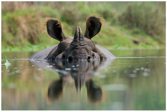 - Ellis, S.; Talukdar, B. Rhinoceros unicornis. IUCN Red List Threat. Species 2019, 2019, e.T19496A18494149. [Google Scholar] [CrossRef]