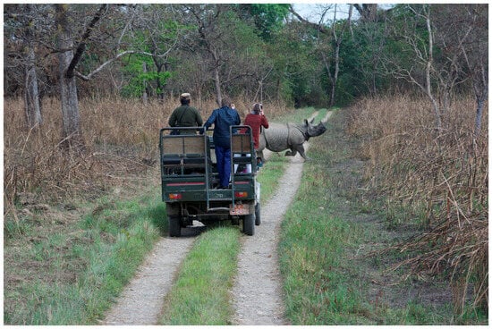 - Baral, A.N. (2013) Impacts of Wildlife Tourism on Poaching of Greater One-horned Rhinoceros (Rhinoceros unicornis) in Chitwan National Park, Nepal. Master’s Thesis, Lincoln University. Available online: http://www.rhinoresourcecenter.com/pdf_files/136/1365296308.pdf (accessed on 10 January 2020).