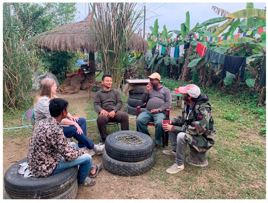 Before the COVID-19 pandemic, 52 of these privately owned individuals worked in the Chitwan area. These elephants carry up to six tourists at a time on a howdah (riding platform). Each ride lasts approximately 90 min, and each elephant may perform up to nine rides a day through the jungle []. These elephants are massively expensive, costing approximately 90 times more than the average annual worker’s salary, meaning that only those of higher socioeconomic standing can obtain them []. They represent a huge financial opportunity, and a huge financial burden thanks to their upkeep costs, which may run up to $19,000 USD annually (PC, 2021) []. These tourism elephants are caught in a liminal space—seen in Buddhist and Hindu literature and society as divine creatures, as literal vehicles for tourism practice, as symbols of power and wealth, but also as disposable commodities which can be sent off when no longer ‘useful’ [,]. They serve as symbols for international organizations hoping to bring awareness to issues facing elephants in captivity, and as representatives of Nepalese history and culture [,]. Working in the hattisars of Nepal is challenging; thanks to my interest in elephant owners and traditions, I initially faced alienation by advocacy organizations hesitant to share their goals lest the owners limit access to elephants. Then, when I began researching advocates and NGOs, elephant owners became hesitant to share their stories, worried that I was a spy for those who might want to see elephant-based tourism end.