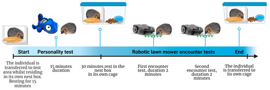 It has been suggested that confidently determining personality in individuals requires repeated measures to determine whether these personality traits remain consistent during different test scenarios [66]. As we prioritised an experimental design to reduce the duration of the tests and handling of the hedgehogs to reduce stress [45] and allowing for the hedgehogs to be released into the wild as fast as possible, it was not possible to accommodate more repeated measures in our test design. It would be relevant to consider a method to increase the repeated measures of personality extending beyond the combined novel object and novel arena test and the encounter tests with a robotic lawn mower.