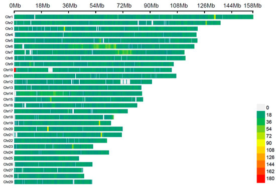SNP density plot for each chromosome displaying the quantity of SNPs.