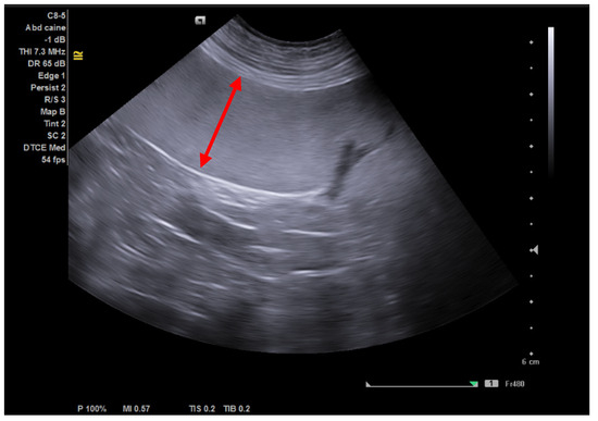 Splenomegaly is a common finding of granulocytic anaplasmosis detected by using diagnostic imaging (abdominal radiograph or ultrasound) [3,26,40,41,42]. In natural infections with A. phagocytophilum, splenomegaly was revealed in 12–100% of dogs [1], according to our observation. Ultrasonographic assessment of the spleen size is subjective. In dogs, the spleen margins appear round, and the organ extends caudally and to the right side of the abdomen [43,44]. Splenomegaly with normal echogenicity is found secondary to extramedullary haematopoiesis (including Babesia spp. and Anaplasma spp. infections and immune-mediated anaemia), infectious diseases, malignant infiltrations (lymphoma, mast cell tumours), splenic torsion, congestion, etc. [43,44].