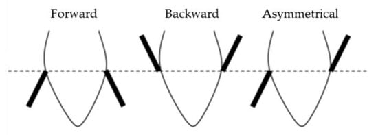 Videos were then analyzed with a focal animal continuous recording method using the software Solomon Coder beta 17.03.22. The durations of different ear postures in the frontal plane (pointing forward, backward, or asymmetrical), as described by Boissy and colleagues [37] (Figure 2), were evaluated during the baseline (10 s) and anticipation phase (10 s) of the oncoming event by an independent observer not aware of the aim of the study. If the ears’ posture is oriented forward, it means that the top of the ear is in front of the frontal plane, and, on the contrary, if pointing backward, the top of the ear is behind the frontal plane. Lastly, if the two ears differ in their position with respect to the frontal plane, they are evaluated as asymmetrical.