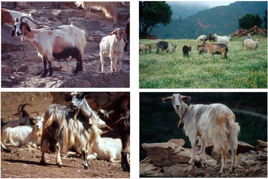 Rahmatalla et al. (2021) [] analyzed the casein cluster in search of new rare variants in both wild and farmed Indian goats, and revealed that most novel SNP variants occurred in the endangered Nubian ibex. The genetic variability of local breeds has been shaped over time in their environment, and represents a precious reservoir of biodiversity that should be protected. Although local breeds, such as the Sarda goat, are less productive than transboundary breeds, they are adapted to the local climate. They can be reared under extensive farming systems in a natural environment [].