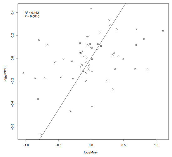 - Weber, C.C.; Nabholz, B.; Romiguier, J.; Ellegren, H. Kr/Kc but not dN/dS correlates positively with body mass in birds, raising implications for inferring lineage-specific selection. Genome Biol. 2014, 15, 542. [Google Scholar] [CrossRef] [PubMed]