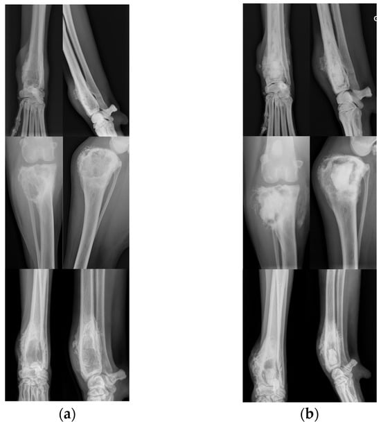 14]. Chest X-rays and fine needle aspiration of the lymph nodes are especially essential to determine the extent of the disease’s progression. Pathological fracture is a well-recognized complication of canine OSA. Indeed, the deterioration of the viscoelastic properties of the affected bone may result in increased plastic deformation and subsequent fracture. As a result, the fractures usually develop spontaneously or with minimal trauma [