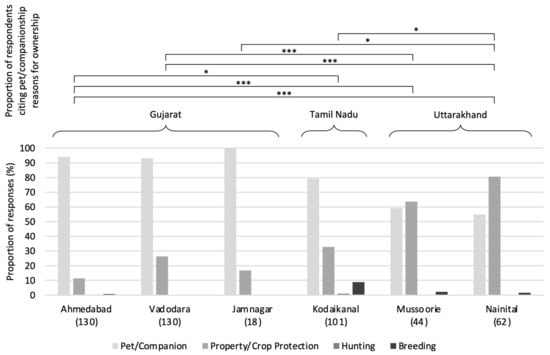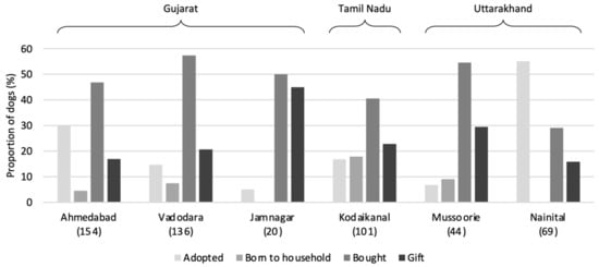 APA StyleBrill, G., Chaudhari, A., Polak, K., Rawat, S., Pandey, D., Bhatt, P., Dholakia, P. K., & Murali, A. (2024). Owned-Dog Demographics, Ownership Dynamics, and Attitudes across Three States of India. Animals, 14(10), 1464. https://doi.org/10.3390/ani14101464
