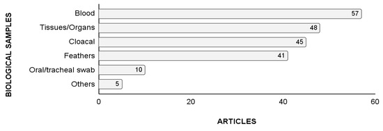 | Vaz et al. [71] | Brazil | Multiplex RT-PCR | Psittacidae | Wild | Flavivirus, Influenza and Paramyxovirus |
