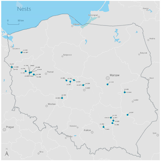 - Zawadzki, G.; Zawadzka, D.; Sołtys, A.; Drozdowski, S. Nest sites selection by the white-tailed eagle and black stork—Implications for conservation practice. For. Ecosyst. 2020, 7, 59. [Google Scholar] [CrossRef]