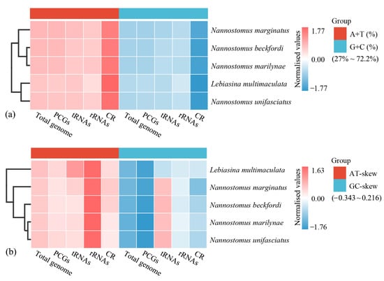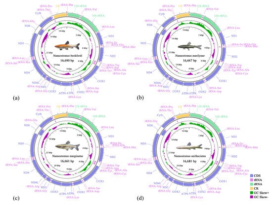 Xu, W.; Tai, J.; He, K.; Xu, T.; Zhang, G.; Xu, B.; Liu, H. Complete Mitochondrial Genomes of Nannostomus Pencilfish: Genome Characterization and Phylogenetic Analysis. Animals 2024, 14, 1598. https://doi.org/10.3390/ani14111598