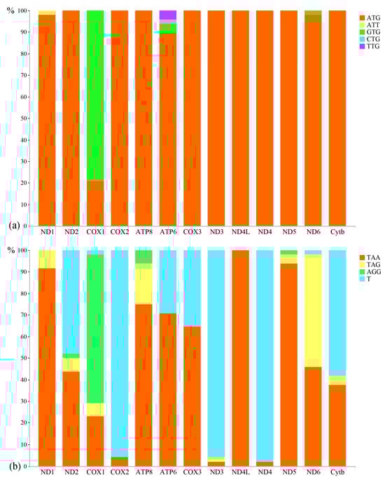| ND5 | 11,964/11,951/11,947/11,956 | 13,802/13,789/13,785/13,794 | 1839/1839/1839/1839 | +/+/+/+ | ATG/ATG/ATG/ATG | TAA/TAA/TAA/TAA | 0/0/0/0 |