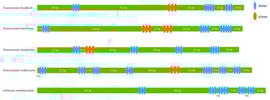 - Montaña-Lozano, P.; Moreno-Carmona, M.; Ochoa-Capera, M.; Medina, N.S.; Boore, J.L.; Prada, C.F. Comparative genomic analysis of vertebrate mitochondrial reveals a differential of rearrangements rate between taxonomic class. Sci. Rep. 2022, 12, 5479. [Google Scholar] [CrossRef] [PubMed]