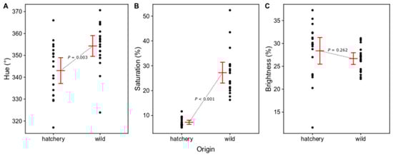 2.2.2. Differences in Morphological Color-Changing Ability between Wild and Hatchery-Reared Marbled Rockfish