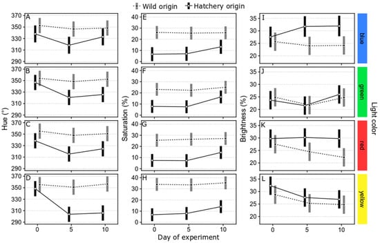 Chicago/Turabian StyleQi, Yulu, Chenhui Liu, Guozi Yuan, Haoyu Guo, Joacim Näslund, Yucheng Wang, Jiangfeng Ru, Yingying Ou, Xuejun Chai, and Xiumei Zhang. 2024. "Disparities in Body Color Adaptability and Ambient Light Color Preference between Wild and Hatchery-Reared Marbled Rockfish (Sebastiscus marmoratus)" Animals 14, no. 11: 1701. https://doi.org/10.3390/ani14111701