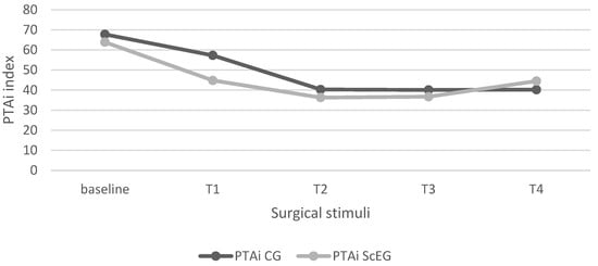 Comparison between groups (CG and ScEG) did not show significant differences in PTAi (p > 0.05) (Figure 1).