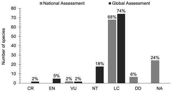 - IUCN. The IUCN Red List of Threatened Species. 2021. Available online: https://www.iucnredlist.org (accessed on 10 April 2022).