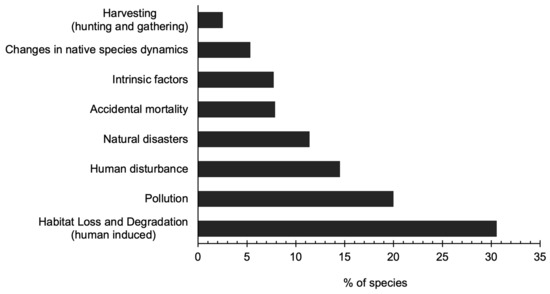 Threat analysis based on general categories [24] and BirdLife International [23,30].