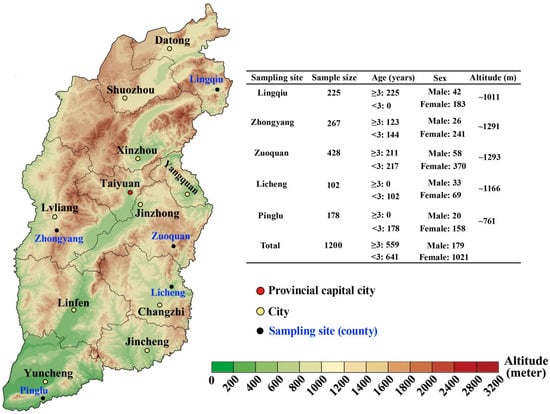 Sampling sites of black goat feces in Shanxi Province, North China.