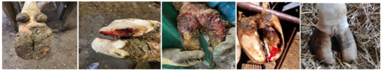 Examples of the most common limb diseases in dairy cows are presented in Figure 1.