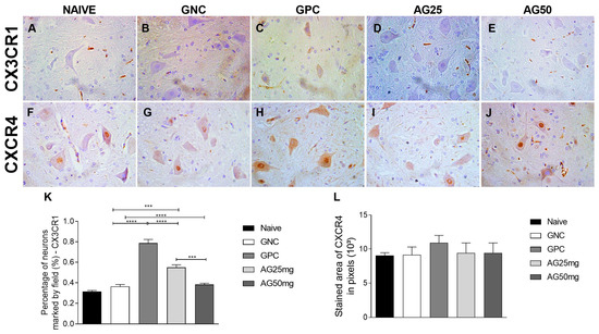 - Bai, L.; Wang, X.; Li, Z.; Kong, C.; Zhao, Y.; Qian, J.L.; Kan, Q.; Zhang, W.; Xu, J.T. Upregulation of Chemokine CXCL12 in the Dorsal Root Ganglia and Spinal Cord Contributes to the Development and Maintenance of Neuropathic Pain Following Spared Nerve Injury in Rats. Neurosci. Bull. 2016, 32, 27–40. [Google Scholar] [CrossRef] [PubMed]