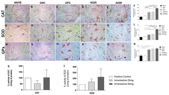4.4. The Treatment with Amantadine Was Effective in Increasing Antioxidant Enzymes in the Cord of Rats with Vincristine-Induced Peripheral Neuropathy
