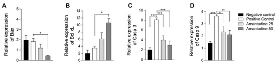 3.3. Amantadine Treatment Inhibits the Expression of Pro-Inflammatory Cytokines in the Spinal Cord of Rats with Vincristine-Induced Peripheral Neuropathy