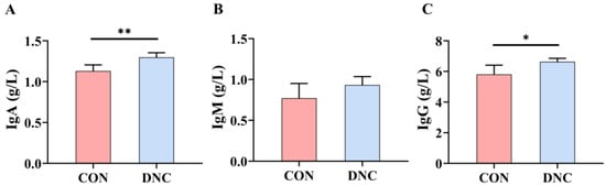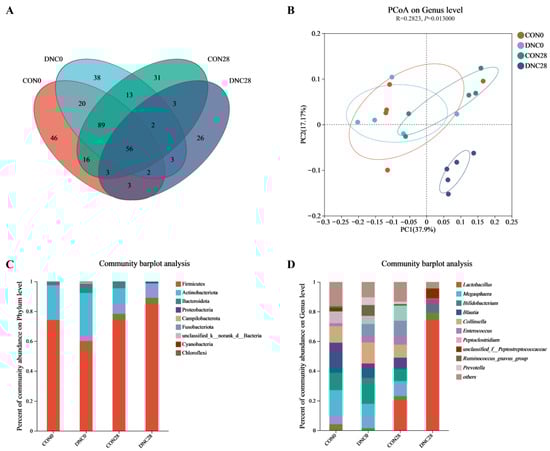 2.5. Analysis of 16S rRNA Gene Diversity of Microbiota in the Intestinal Tract of Kittens