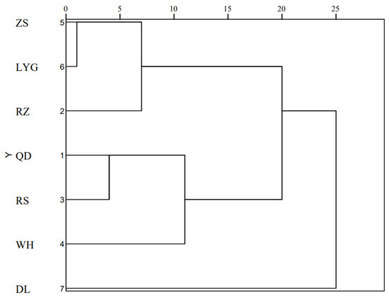 The dendrogram based on Euclidean distances of C. myriaster populations. (DL, WH, RS, QD, RZ, LYG, and ZS stand for the Dalian population, Weihai population, Rushan population, Qingdao population, Rizhao population, Lianyungang population, and Zhoushan population, respectively).